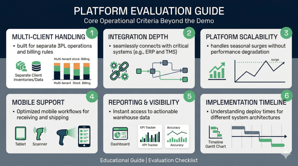 Choosing the right WMS requires testing platforms against your specific workflows, not just comparing feature lists. If you operate a 3PL or multi-client warehouse, a purpose-built platform will typically deliver faster deployment and stronger operational fit than adapting a general-purpose system.