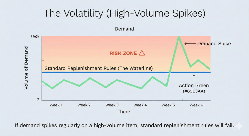 Expert insight, Mathew Buttar, warehousing professional at Clarus WMS: “Safety stock is about ensuring you can cover orders for a given time period. If demand spikes regularly on a high?volume item, you may need an additional percentage held at all times.”